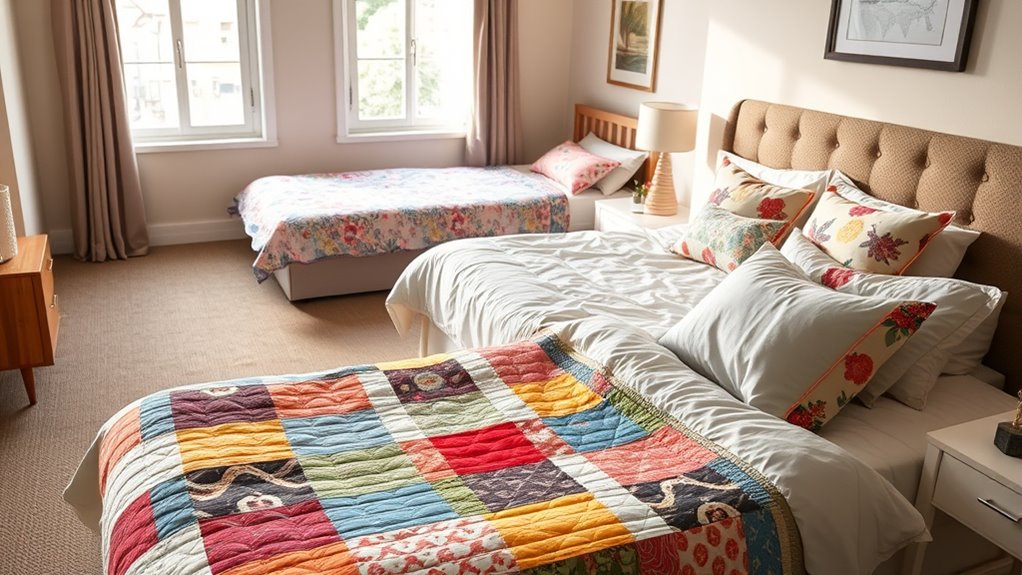 You’ll notice that bed sizes vary widely across cultures due to different cultural bedding traditions and regional sleep habits. In some countries, small beds like twin or single are common, reflecting compact living spaces. Others prefer larger options like king or queen beds for comfort and family sleeping habits. These differences shape the way people choose bedding, influenced by local customs, climate, and lifestyle, making each region’s sleep setup unique.
