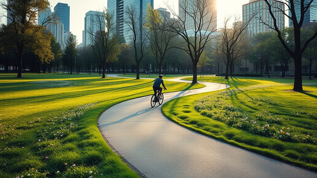 You can reduce your carbon footprint in urban travel by choosing sustainable transportation options like biking, walking, or public transit. Opt for eco-friendly accommodations that prioritize energy efficiency and waste reduction. Carpool with others or use shared mobility services when possible. These actions help lower your environmental impact, support greener city initiatives, and promote a more sustainable way to explore urban areas while minimizing pollution and conserving resources.