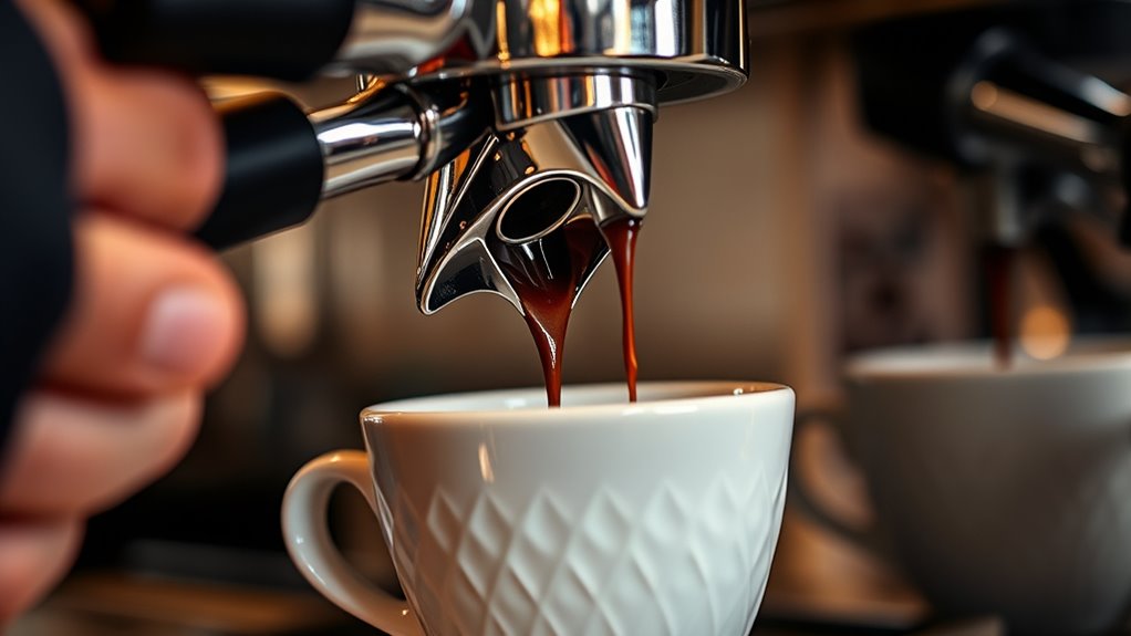 Think of your espresso basket as a tiny garden bed. When you plant seeds unevenly or neglect to water it properly, growth becomes uneven and patchy. But with careful planting, consistent watering, and tending, your garden flourishes. Similarly, by mastering channeling techniques and maintaining your machine, you guarantee your espresso garden blooms with rich, balanced flavor every time. Keep tending your skills, and your perfect shot will become your daily harvest.