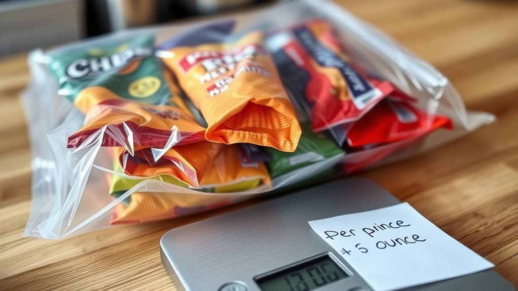 To compare unit prices across different packaging sizes, you should look at the price per ounce or unit, which helps you account for packaging differences and avoid being misled by price fluctuations. Check the unit price labels on the labels or shelf tags, and choose the option with the lowest cost per ounce. This way, you get the best deal, regardless of larger or smaller packages.
