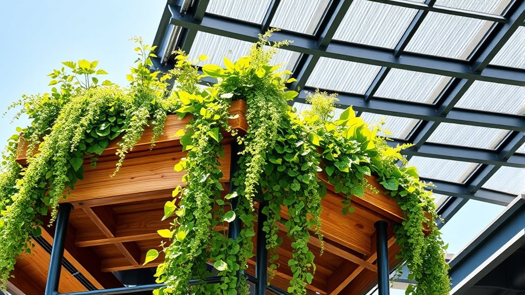 Als nächstes ist die Auswahl der richtigen Pflanzen entscheidend, um einen ausgewogenen, nachhaltigen Dachgarten zu erhalten. Entscheiden Sie sich für dürreresistente, leichte Pflanzen, die keinen hohen Wasserbedarf haben oder ausgedehnte Wurzelsysteme benötigen. Einheimische Arten oder solche, die an Ihr Klima angepasst sind, gedeihen mit weniger Pflege und sind weniger wahrscheinlich, überwuchert zu werden oder eine zu große Bodentiefe zu erfordern, was das Gewicht erhöht. Ziehen Sie pflegeleichte Optionen wie Sukkulenten, Ziergräser oder kleine Sträucher in Betracht, die für Containerbepflanzung geeignet sind, falls der Platz begrenzt ist. Bei der Auswahl Ihrer Pflanzen sollten Sie auch auf deren Wurzelsysteme achten; flachwurzelnde Sorten verringern das Risiko einer Überlastung der Pflanzen und einer Bodenkonsolidierung, was die Bodentrennung und strukturelle Integrität beeinträchtigen könnte.