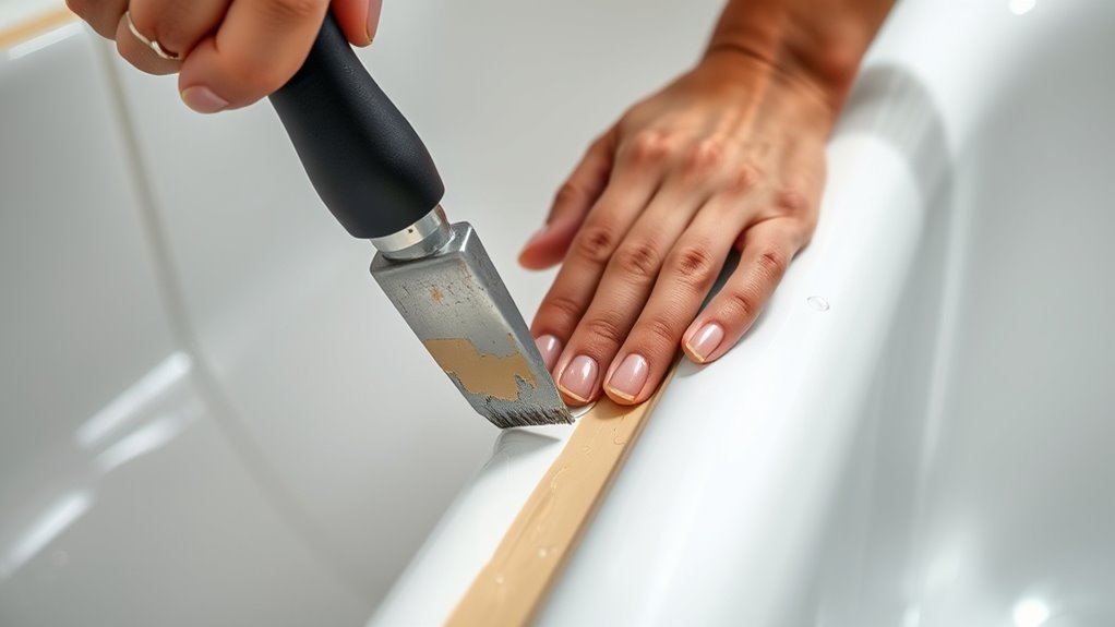 To recaulk your tub or shower, start by removing the old caulk with a utility knife or caulk remover tool, then clean and dry the area thoroughly. Select a high-quality, mold-resistant silicone or silicone-latex caulk and apply it evenly along the joint with a caulk gun. Smooth the bead with a damp finger or tool, wipe away excess, and let it cure for 24 hours. Proper preparation guarantees a durable seal, and with these steps, you’ll be prepared for a professional finish.