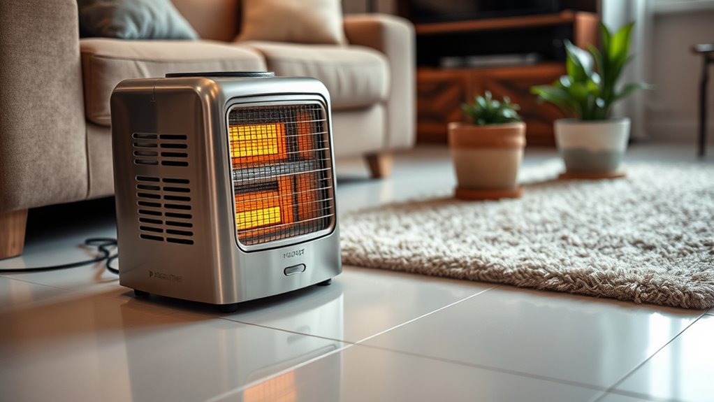You can use space heaters outdoors safely if they’re designed for outdoor heating and have weather resistance features. Look for models specifically built for outdoor use, as they’re protected against rain, snow, and wind. Always follow the manufacturer’s instructions, keep the heater away from water, and place it on a stable surface. Proper outdoor heating guarantees warmth without risking safety, so choose the right heater and use it responsibly.