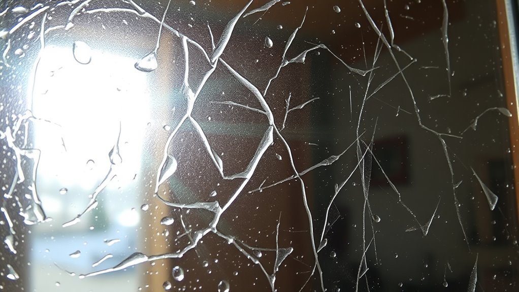 Have you ever noticed water droplets forming on your windows and wondered what causes it? That phenomenon is called condensation, and it happens when warm, moist air comes into contact with a cooler surface. Your windows are prime spots for this, especially during colder months or in humid environments. Understanding why this occurs can help you address it effectively. One key factor is the energy efficiency of your windows, which directly impacts how much heat passes through the glass. Windows with poor energy efficiency tend to have lower insulation qualities, causing the glass to cool more rapidly and increasing the likelihood of condensation. Upgrading to energy-efficient windows can markedly reduce this problem because they are designed with better insulative materials and coatings that keep indoor surfaces warmer. When you choose window materials that improve energy efficiency, you create a barrier against heat transfer. Double or triple-pane windows, for example, contain inert gas fills like argon or krypton between panes, providing better insulation than single-pane options. Additionally, low-emissivity (low-E) coatings reflect heat back into your home rather than allowing it to escape, further maintaining warmer interior surface temperatures. This means that the inner surface of your window stays warmer, reducing the temperature difference between indoor air and the glass, and consequently minimizing condensation.