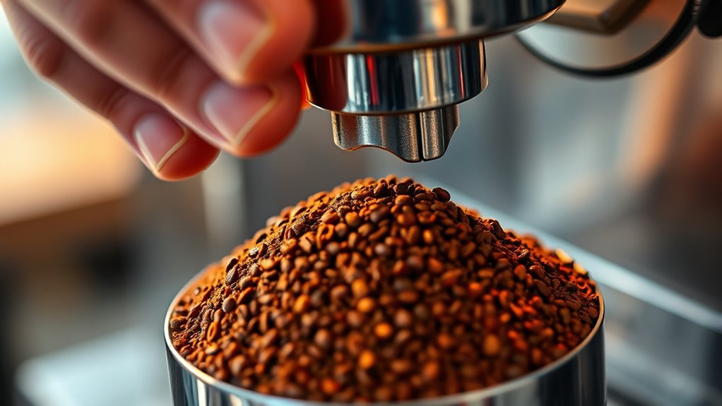 Bei der Wahl der idealen Mahlgradgröße konzentrierst du dich auf die Kaffeebohnenherkunft und den Röstgrad, um deinen Mahlgrad entsprechend anzupassen und den Geschmack zu verbessern. Helle Röstungen benötigen oft einen feineren Mahlgrad, um zarte Noten hervorzubringen, während dunklere Röstungen von einem gröberen Mahlgrad profitieren, um die Boldness auszugleichen. Ebenso erfordern Bohnen aus unterschiedlichen Regionen Anpassungen — du passt deine Mahlgradgröße an, um eine optimale Extraktion zu gewährleisten und den Geschmack zu maximieren, unabhängig von Herkunft oder Röstgrad.