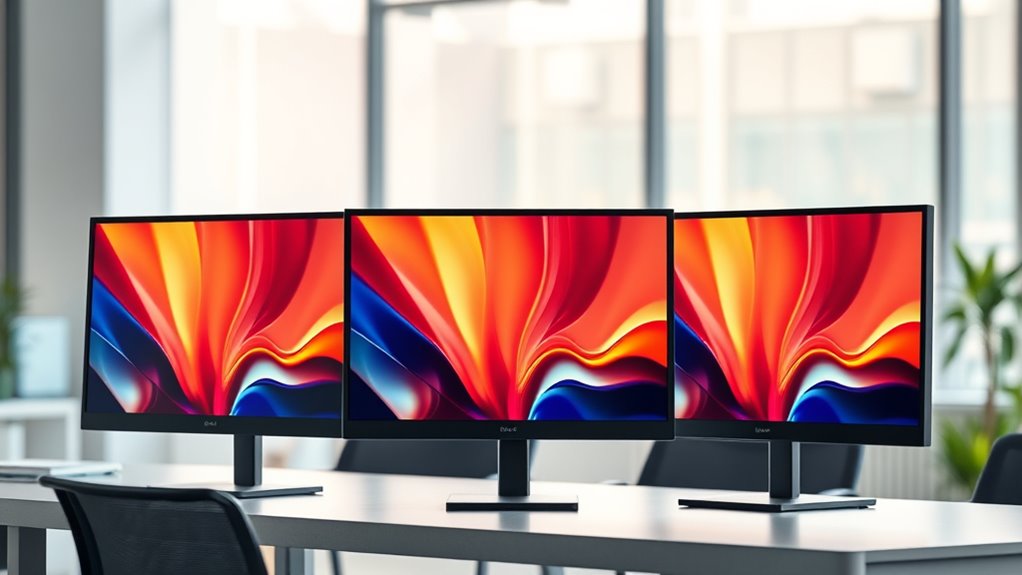 Color accuracy on e-ink displays isn’t as vibrant or precise as traditional LCD monitors. I find that LCDs deliver richer, more vivid colors, making them ideal for tasks needing true color representation. E-ink screens prioritize eye comfort and readability over color perfection, so they’re better for reading and extended viewing, but they fall short when it comes to producing the sharp, accurate hues that LCDs can achieve.