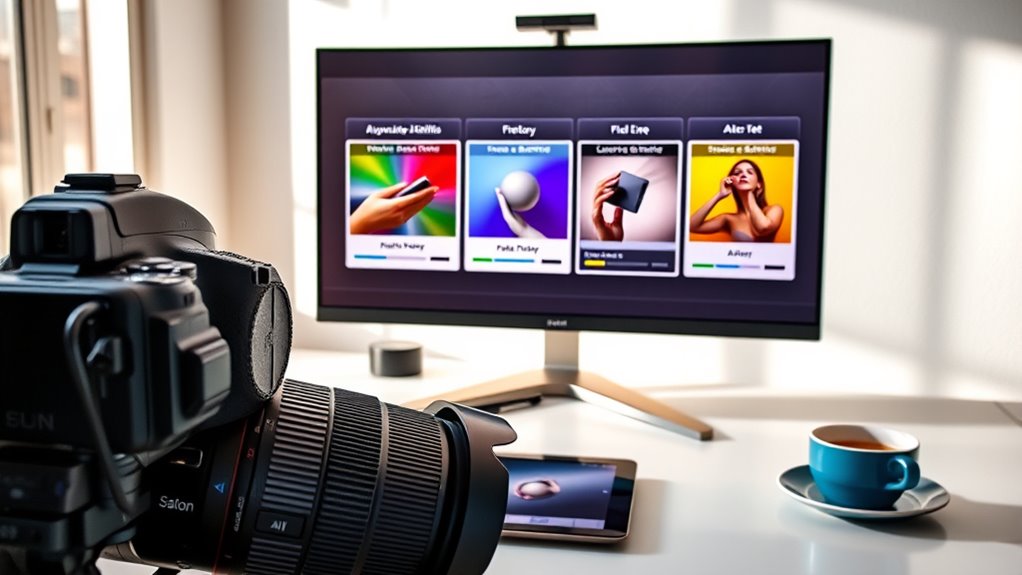 AI photo editors prioritize privacy and security by using encrypted data transfer and storage, ensuring your images are protected. I trust that reputable apps minimize data sharing and give me control over my images, like allowing local editing or deleting data after use. They also comply with privacy laws, so I feel confident my personal photos aren’t at risk. Always check the privacy policy to understand how your data is handled.