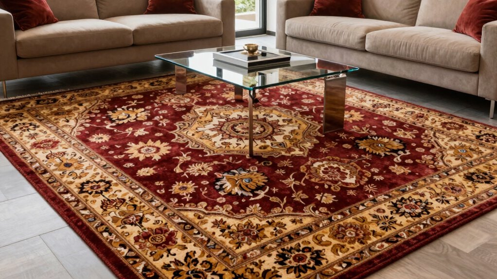When choosing an area rug for your living room, considering how easy it is to clean and maintain can save you time and effort in the long run. Machine-washable rugs make regular cleaning much simpler, helping your rug stay fresh and attractive. Low-pile options are easier to vacuum and spot-clean than shaggy or high-pile rugs. Stain-resistant materials prevent liquids from soaking in, making spill cleanup quick and hassle-free. Rugs with reinforced overlocked edges are less likely to fray after multiple washes, increasing durability. Additionally, water-repellent or water-resistant rugs provide extra protection against spills, simplifying ongoing maintenance. Prioritizing these features ensures your living room stays inviting without the stress of difficult cleaning routines.