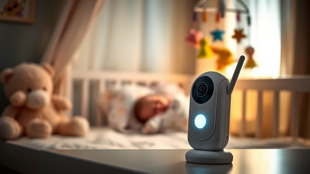 I understand your concern about security. Most modern baby monitors use encryption to protect video feeds, making it difficult for hackers to access them. However, no system is completely foolproof. To stay safe, I recommend choosing monitors with strong encryption, changing default passwords, and keeping firmware updated. Taking these steps helps make certain your feeds stay private and your little one’s safety isn’t compromised.