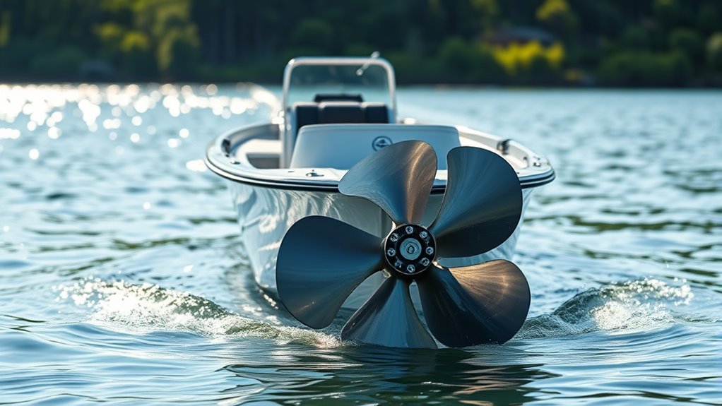 Absolutely, different propeller designs can act like the whisper of a gentle breeze or a roaring storm on the water. I’ve noticed that some shapes and pitches produce less noise, making my boat run smoother and quieter. It’s like tuning a musical instrument to get the perfect pitch. Choosing the right design helps me keep my bait stealthy and my operation peaceful, even at higher speeds.