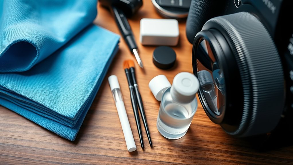 Choosing the right camera cleaning kit is like finding the perfect lens—both require care and attention. While some kits offer thorough tools, others focus on specific needs, just like a versatile backpack versus a sleek wallet. Whether you’re a pro or a hobbyist, keeping your gear spotless keeps your shots sharp. So, don’t just clean your camera—treat it like the trusted friend it is, and your images will thank you.