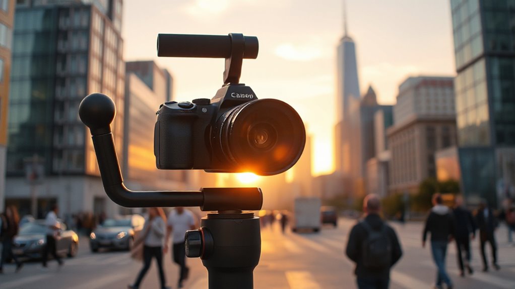If you’re looking for the best camera stabilizers of 2026, I’ve got you covered. From handheld models like the Flycam 5000 to advanced gimbals like the FeiyuTech SCORP 3 and DJI RS 3 Mini, there’s something for every need. Portable options with extra features, integrated accessories, and compatibility with various devices make it easier to get professional results. Keep going to discover detailed options and tips for choosing the perfect stabilizer for your projects.