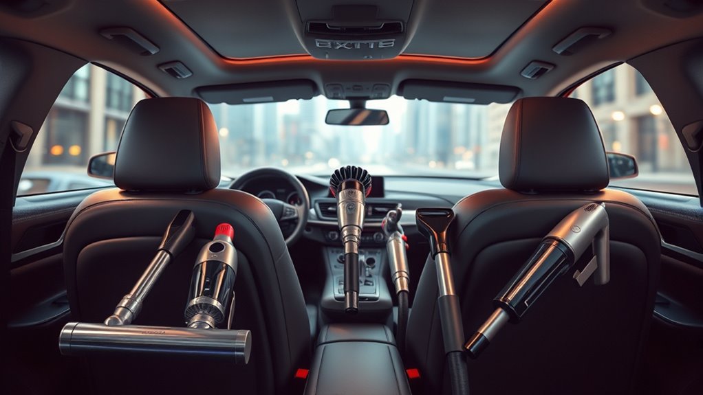 Think of HEPA filters like the immune system of a vacuum—they catch tiny particles that most filters miss. Yes, I believe HEPA filters are necessary for effective car cleaning, especially if you or your passengers have allergies or sensitivities. They trap allergens, dust, and pet dander, ensuring your ride isn’t just clean on the surface but truly purified. Investing in a HEPA-equipped cleaner is like adding an extra layer of protection.