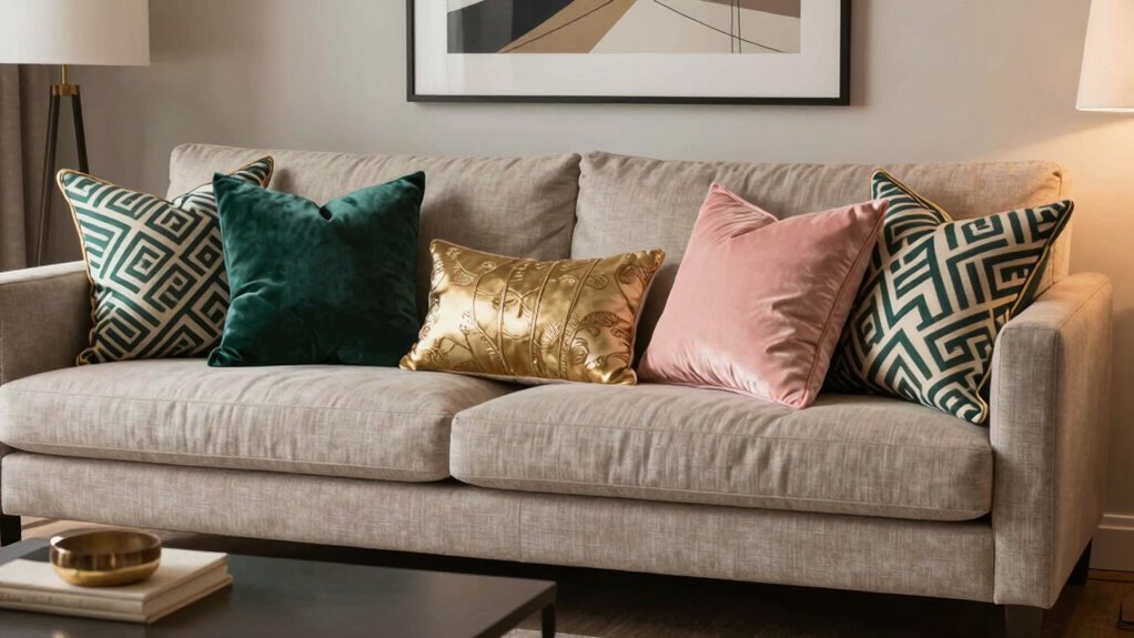 Patterns and colors play a key role in elevating the visual impact of your decorative throw pillows. When selecting them, I recommend choosing patterns and hues that complement your existing decor to create a cohesive look. Seasonal or thematic patterns, like floral or autumn motifs, can refresh your space throughout the year. For a bold statement, opt for vibrant, eye-catching colors; for a more subtle, sophisticated vibe, muted tones work beautifully. Mixing different patterns and colors adds visual interest and prevents your decor from feeling dull or monotonous. It’s also important to contemplate the scale of the pattern and the contrast of colors, ensuring they suit the size of your furniture and overall aesthetic. Thoughtful choices make your space feel intentionally styled and inviting.