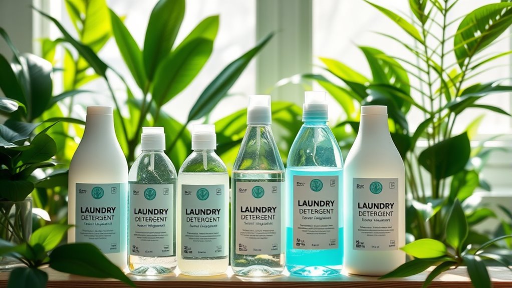 If you’re looking for eco-friendly laundry detergents that are gentle on both your skin and the planet, I recommend checking out options like plant-based, fragrance-free formulas, concentrated liquids, and biodegradable sheets. Many of these have certifications like USDA or EPA Safer Choice, and use minimal, safe ingredients. They also come in recyclable or plastic-free packaging, making them both effective and sustainable. Want to find out which brands stand out and why? Keep exploring for all the details.