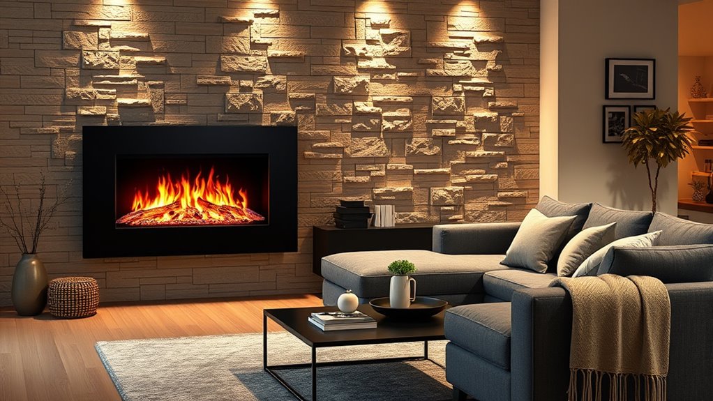 If you’re looking to warm your home in style, I recommend exploring options like sleek wall-mounted and recessed units, fireplaces with realistic flames, and versatile sizes from 32 to 72 inches. Many models offer customizable flame effects, remote controls, and energy-efficient heating for spaces up to 400 or even 1000 sq ft. Whether you prefer modern or rustic decor, there’s a fireplace to match your style. Keep going to discover some of the best options to fit your space.
