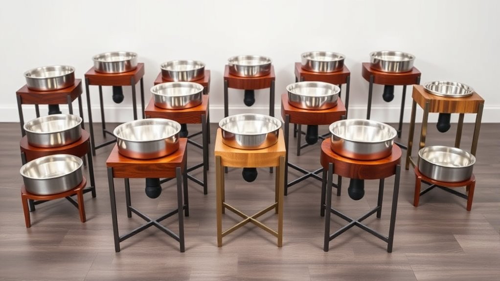 Choosing the right elevated pet bowl isn’t just about convenience; it’s about giving your pet comfort and health. Like a sturdy stand that supports them, the perfect bowl balances durability with ease of use. While some options offer sleek design, others prioritize adjustable height for growing pups. Remember, the right choice isn’t just functional—it’s a thoughtful gesture that shows you care. After all, a happy pet starts with a well-designed, comfy dining experience.