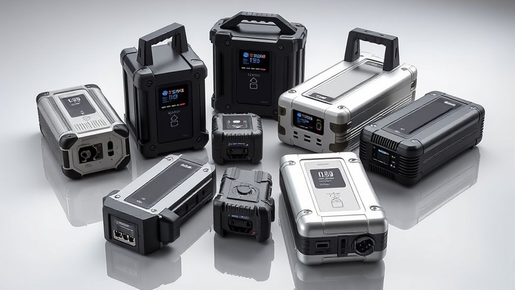 Choosing an emergency power supply for medical equipment requires considering how portable and manageable the unit is. Portable options typically weigh between 3.7 to 23 pounds, making them easier to carry or move. Compact models under 10 inches are ideal for bedside use or travel, while larger units often need wheeled carts for transport. Handles or stands can make frequent movement or emergency deployment smoother. Battery capacity, from 88Wh to over 992Wh, impacts both runtime and size; higher capacities usually mean bigger units. Size restrictions also matter if you plan to travel by plane, as airlines have carry-on limits on weight and dimensions. Balancing power needs with portability guarantees you select a unit that’s both effective and practical in real-world situations.