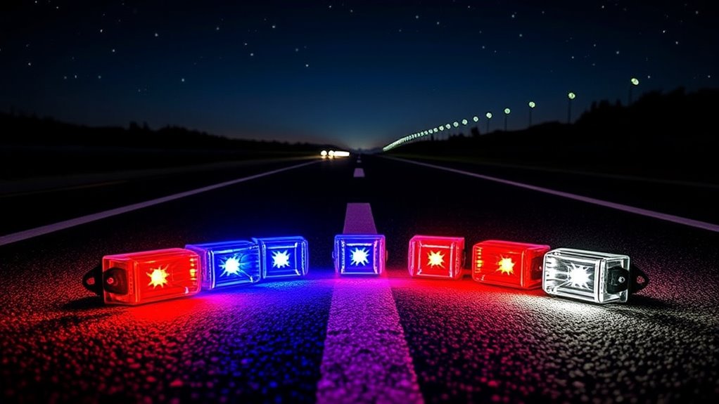 Ever wondered how bright and visible your emergency flare needs to be to catch attention effectively? Brightness is measured in lumens, with higher lumens meaning more visibility. A powerful flare can be seen from up to a mile away in dark conditions, which is vital for safety. Multiple flashing modes, like SOS or rotating patterns, boost signaling effectiveness and help rescuers locate you faster. Choosing high-visibility colors such as orange or red further enhances detectability in various weather conditions. Additionally, 360-degree illumination ensures the flare can be seen from all angles, maximizing its warning potential. When selecting a rechargeable LED flare, prioritize brightness and visibility features to guarantee you’re easily noticeable and safe during roadside emergencies.