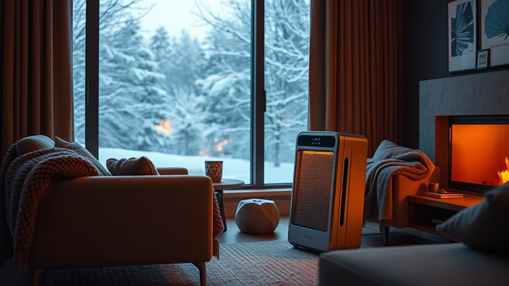 Energy-efficient space heaters save me money by using less electricity while still providing ample warmth. They often feature smart thermostats and adjustable settings, so I only heat the room I’m in and avoid wasting energy. Plus, modern heaters have better insulation and technology that heats quickly and maintains temperature efficiently. This means I stay cozy without skyrocketing my electricity bills, making them a smart choice for cost-conscious warmth.