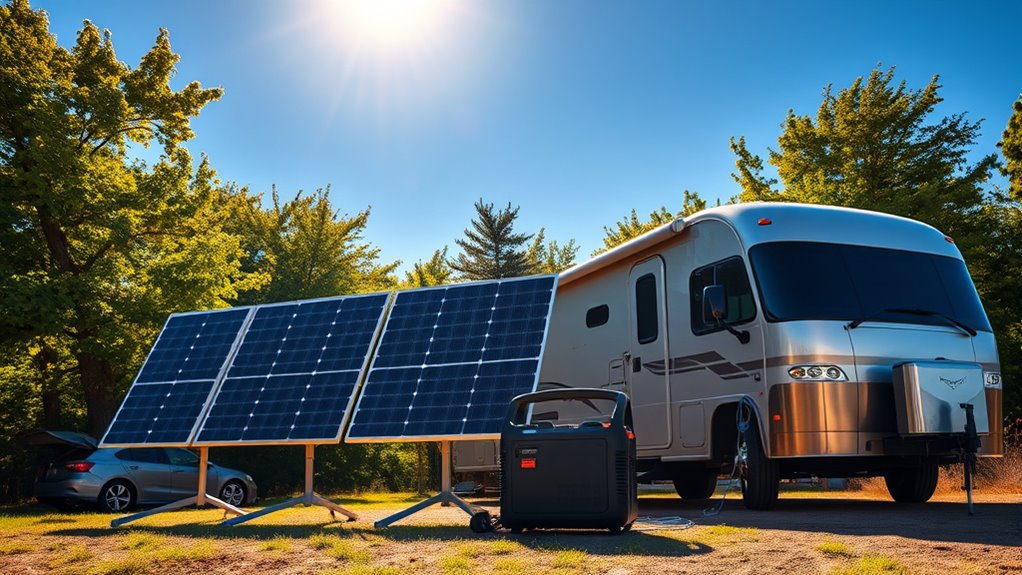 So, whether you’re chasing sunsets or just want reliable power, these kits make it easy to stay connected. Remember, choosing the right setup is like finding your own Excalibur—empowering you to conquer the open road. Don’t wait for a knight in shining armor; take control now and enjoy effortless adventures. With these solar generators, you’ll be ready for whatever the future holds—because, after all, the journey’s what counts.