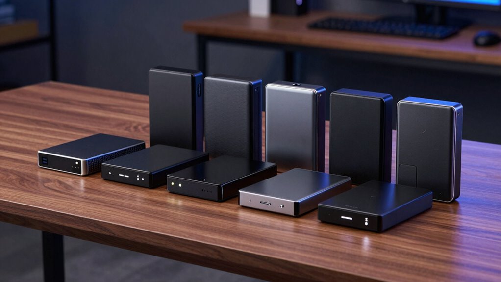 Ever wondered how much transfer speed matters when selecting an 8TB external hard drive? The answer depends on how you plan to use it. If you’re transferring large multimedia files or performing regular backups, faster drives like those with USB 3.2 Gen 2 or Thunderbolt 3 can substantially reduce wait times. NVMe SSDs offer speeds over 1,000MB/s, making them ideal for real-time editing or gaming, where performance is critical. Keep in mind, your device’s ports and bandwidth capabilities also influence achievable transfer speeds. If your device supports high-speed connections, you’ll maximize your drive’s potential. Conversely, slower ports will bottleneck even the fastest drives. So, consider your data transfer needs and device compatibility to choose an external hard drive that delivers the speed you require.