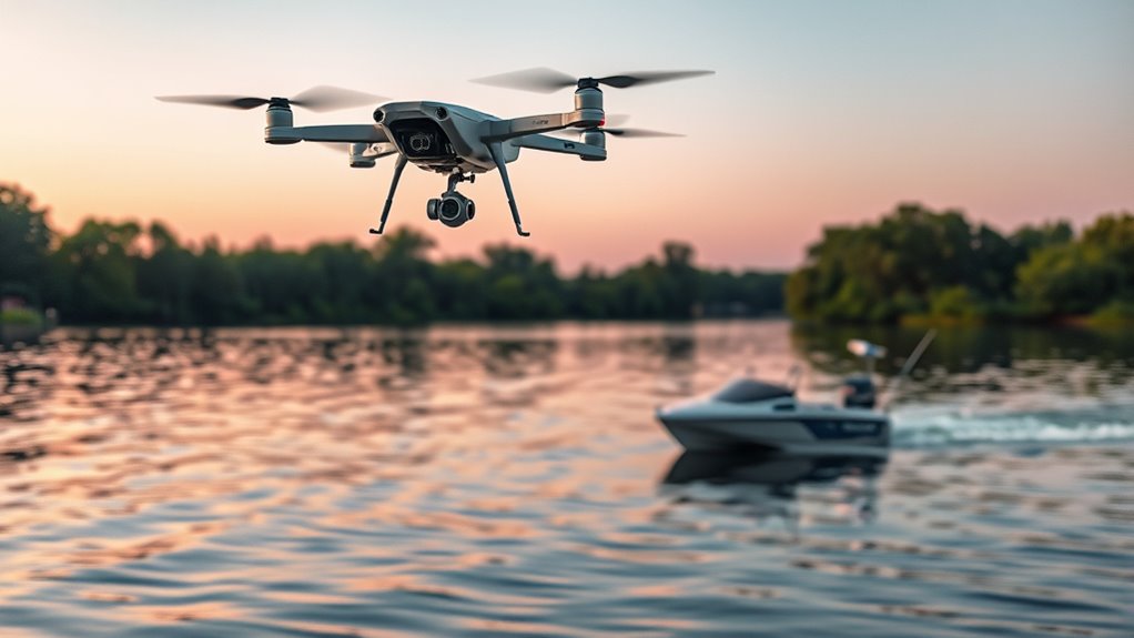 I make sure to check local laws before using fishing drones or bait boats. Regulations vary widely, so I review the rules on drone flight restrictions, fishing permits, and waterway access. I also stay within designated areas and avoid disturbing wildlife. It’s essential to follow any altitude limits or no-fly zones. By staying informed, I can enjoy fishing responsibly while respecting legal boundaries.