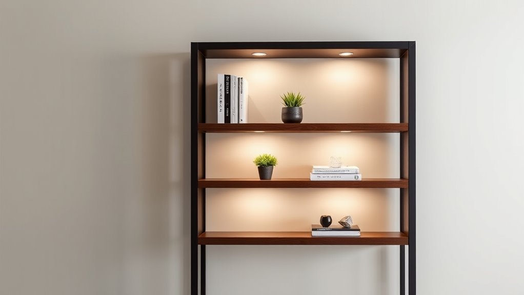 Adjustable lighting options are essential for creating a versatile and comfortable space with your floor lamp and shelves. Many models offer adjustable brightness and color temperature, letting you tailor the light for reading, relaxing, or working. Manual or remote-controlled dimming and color adjustments give you precise control over ambient lighting, making it easy to set the perfect mood. Some lamps even incorporate smart technology, allowing app-based or voice-controlled adjustments for seamless customization. Additionally, swivel or tilt mechanisms help direct light exactly where you need it, whether highlighting a book or illuminating decor. Multiple lighting modes and controls enhance flexibility, ensuring your floor lamp adapts to different activities and environments effortlessly. These features make your space more functional and personalized.