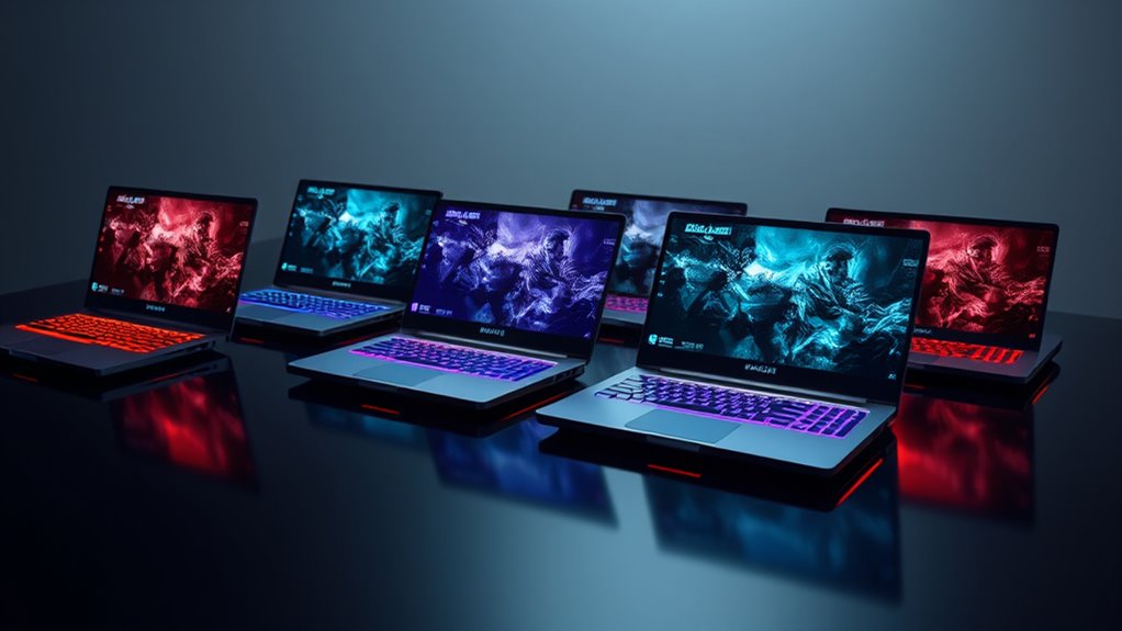If you’re looking for the best gaming laptops under $1000 that pack a punch, I’ve got you covered. From laptops with the latest Intel Core i7 and AMD Ryzen 7 processors to powerful NVIDIA GeForce RTX 4050 graphics, these models deliver smooth gameplay and multitasking. They also offer vibrant displays, solid storage, and portability. Stick around to learn more about each option and find the perfect fit for your gaming needs and budget.