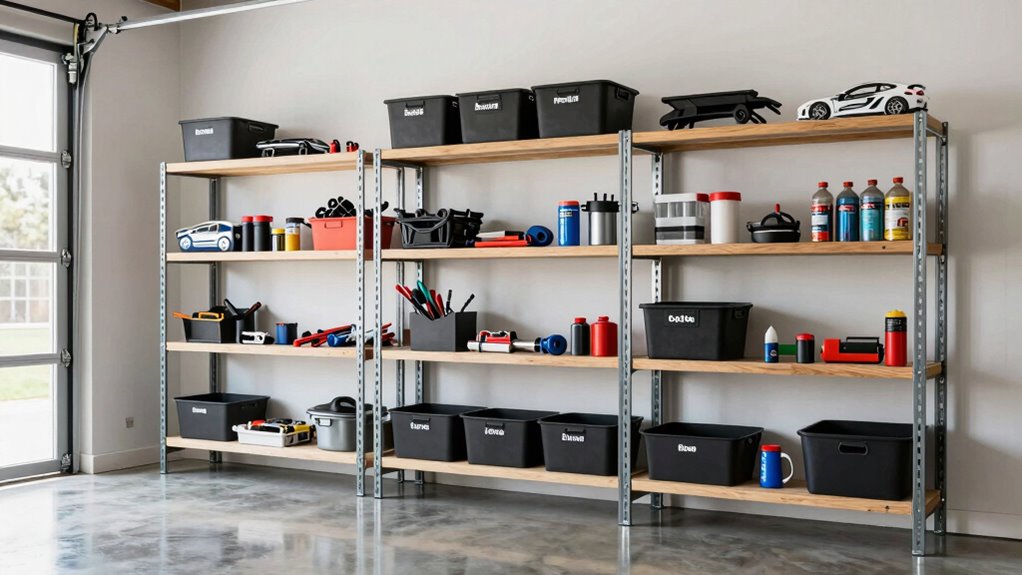 Are you making the most of your garage space? Choosing the right shelving units can dramatically improve storage efficiency. Look for adjustable height features so you can customize storage for different-sized items. Modular or expandable designs are great because they adapt as your needs change. Prioritize shelves with multiple tiers to maximize vertical space and boost overall capacity. Sturdy construction with high weight capacities ensures you can store heavy or bulky items without cluttering the area. Also, consider units that have a small footprint or corner configurations, especially if your garage has limited or irregularly shaped spaces. These options help you utilize every inch effectively, creating a clean, organized, and functional garage environment.