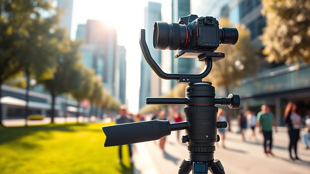 If you want smooth, professional videos in 2025, there are several top gimbals worth considering. From compact smartphone stabilizers like the DJI Osmo Mobile 7 to powerful DSLR supports like the DJI RS 3 Mini, each offers unique features such as quick setup, intelligent tracking, and long battery life. Whether you’re into vlogging or cinematic filming, these stabilizers can help elevate your shots. Keep exploring to discover which one best fits your style and needs.