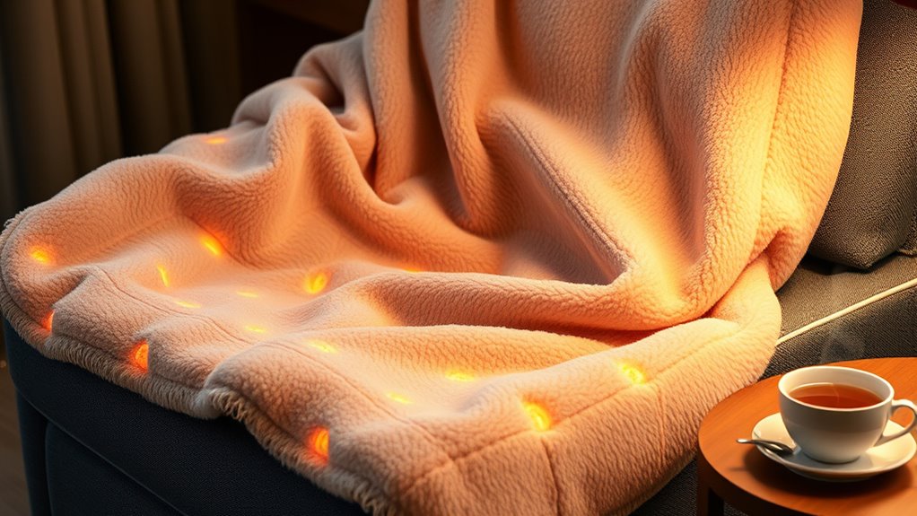 If you’re looking for the 15 best heated throw blankets for cozy comfort in 2025, I’ve got you covered. These options feature soft fabrics like Sherpa and fleece, combined with adjustable heat settings and safety features like auto shut-off. Many models are lightweight, easy to clean, and come in stylish patterns. Whether you want rapid warmth or customizable levels, these blankets blend comfort and safety. Keep exploring to find the perfect heated throw for your ideal winter snuggle.
