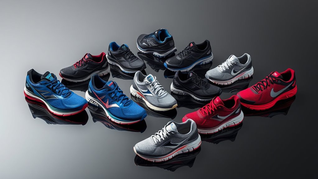 Choosing the right high-end running shoes involves more than just spotting a high price tag; it’s about finding the best balance between cost and the features you get. These shoes generally cost between $150 and $300, thanks to advanced materials and technology. But price alone doesn’t guarantee quality—consider durability, support, and performance features that justify the expense. Investing more often means better cushioning, lighter weight, and a longer lifespan compared to cheaper options. However, it’s essential to weigh the benefits of specialized features like enhanced shock absorption and stability against the cost. Ultimately, the value lies in how well the shoes meet your needs over time, giving you the best performance without unnecessary overspending.