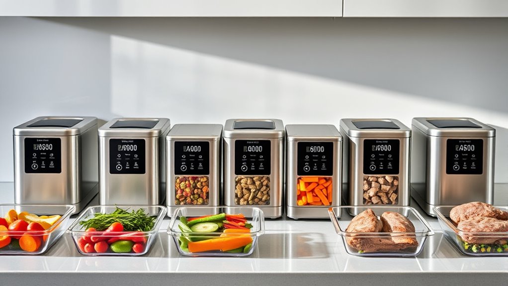 High-end sous-vide circulators improve cooking precision by maintaining a consistent water temperature, ensuring perfectly cooked food every time. I love how their advanced sensors and precise controls adapt instantly to changes, preventing overcooking or undercooking. They often feature smart technology, like app connectivity, allowing me to monitor and adjust settings remotely. This level of control guarantees consistent results, elevating my cooking game to professional standards.