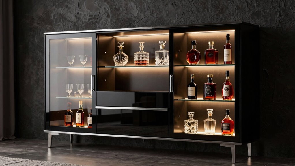 Lighting options play a significant role in highlighting the style and functionality of your home bar cabinets. I find that LED lighting, especially RGB strips, offers customizable ambiance with adjustable colors, modes, and brightness. Built-in lighting, like warm LEDs or RGB lights, enhances the visual appeal of bottles and glassware, making the space more inviting. Some cabinets even come with remote-controlled systems that sync with music or change colors automatically, adding a fun, modern touch. Proper lighting not only creates atmosphere but also improves visibility, making it easier to find what you need, especially in low-light settings. When choosing lighting, I consider energy efficiency, durability, and ease of control, ensuring long-term enjoyment and practicality.