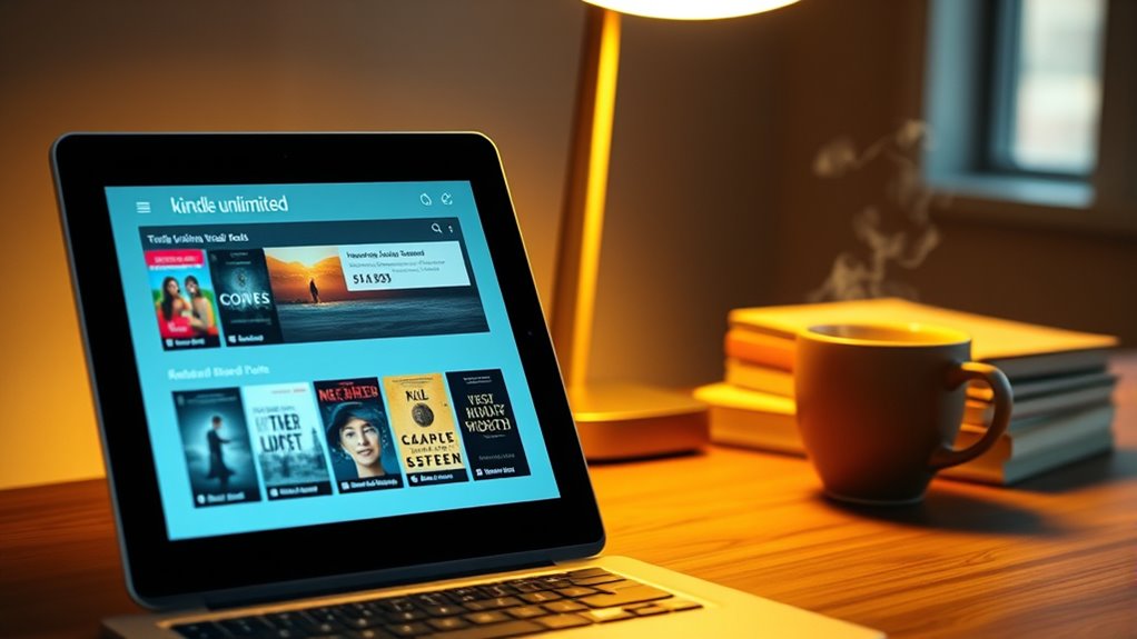 Choosing the right Kindle Unlimited deal in 2025 means considering device compatibility, as it affects how easily you can access your favorite books. Kindle Unlimited works with a variety of devices, including Kindle e-readers, Fire tablets, iOS and Android smartphones and tablets, and compatible Kindle apps for PC and Mac. The app-based reading experience means you can enjoy books on virtually any device that supports the Kindle app, regardless of operating system. However, some older Kindle models may lack access to the latest features or content, so checking your device’s compatibility is essential. Additionally, the cloud-based library can be accessed through web browsers on supported devices, broadening your options. Ensuring your device supports the latest Kindle app guarantees seamless access to the full catalog.