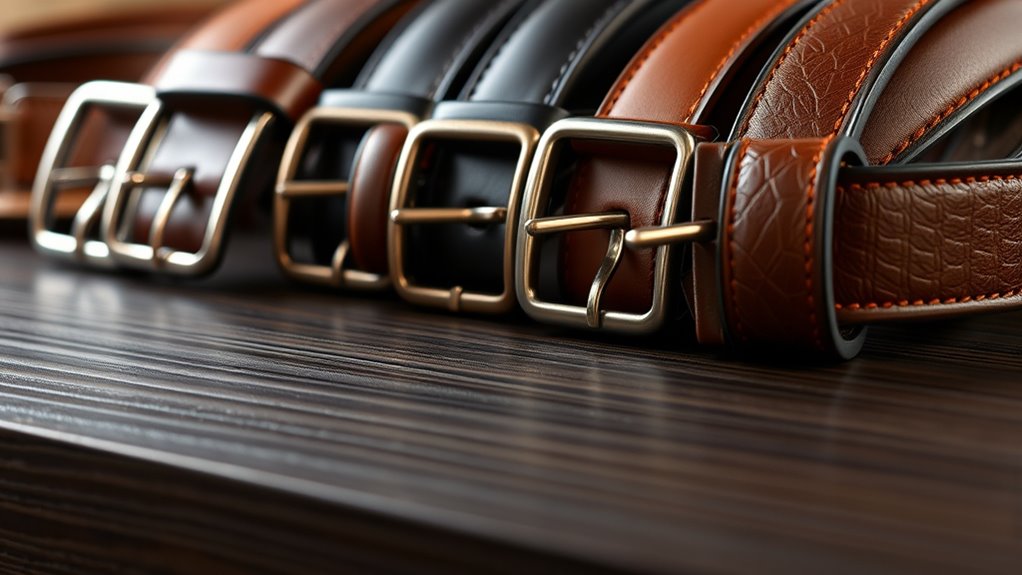 I find that a simple, classic buckle—like a polished silver or matte brass—works best for both formal and casual wear. It’s versatile and timeless, easily pairing with everything from suits to jeans. Avoid overly ornate or flashy buckles, as they can clash with a refined look. Stick with clean lines and subtle finishes, and you’ll have a belt that shifts seamlessly from work to weekend.