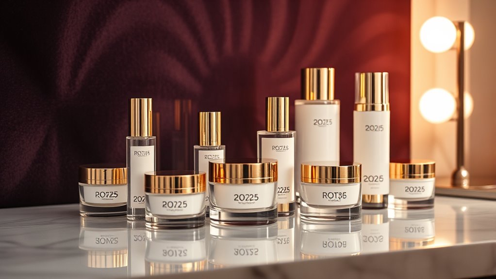 Ever wondered why some skincare products feel instantly more luxurious just by their packaging? It’s all about design and presentation. High-end products often feature elegant packaging that signals quality and exclusivity, making them more appealing. Thoughtful touches like customized boxes, ribbons, or holiday-themed details boost their gift appeal and perceived value. More consumers now seek eco-friendly, cruelty-free, and recyclable materials, aligning luxury with sustainability. Clear labeling and detailed ingredient lists foster trust by showing transparency about ingredients and ethical standards. Additionally, well-designed packaging isn’t just beautiful—it protects delicate products during transit and storage, ensuring their effectiveness. Ultimately, packaging and presentation play a pivotal role in elevating your skincare experience, making every application feel like a luxury indulgence.