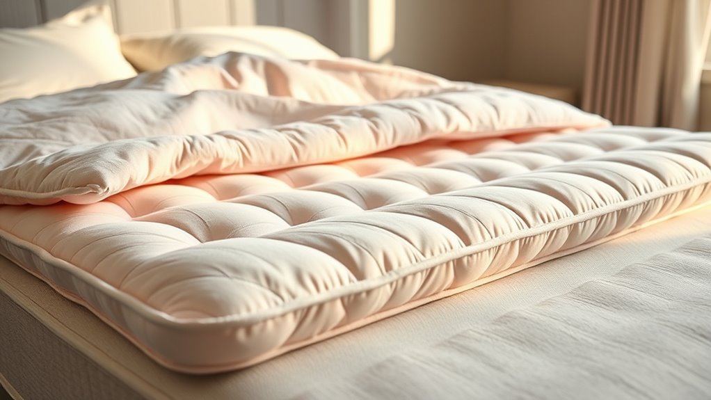 When selecting a mattress topper for back pain relief, durability and longevity should be top considerations. High-quality materials like dense memory foam or reinforced fabric resist tearing and flattening over time, ensuring consistent support. The manufacturer’s warranty, often ranging from 3 to 10 years, offers a good indicator of a topper’s lifespan. Proper care—regular washing and avoiding direct sunlight—can profoundly extend its life. Toppers with reinforced edges and deep, elasticized pockets maintain their shape and fit longer, preventing slipping or deformation. Investing in a well-constructed topper with high-density foam or durable fabric not only provides sustained support and comfort but also reduces the need for frequent replacements. Durability truly makes a difference in long-term back pain relief.
