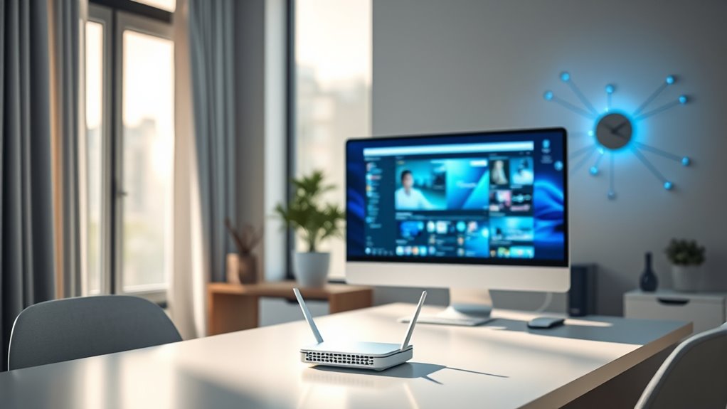 Mesh WiFi improves my remote work productivity by providing seamless, reliable internet throughout my home. It eliminates dead zones and guarantees my connection stays strong even as I move around. I don’t have to worry about slow loading or disconnections during important calls or file uploads. With a mesh system, I can focus on my tasks without interruptions, making my workday smoother and more efficient.