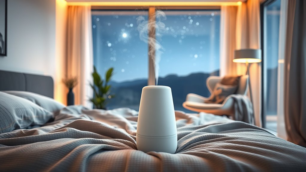 A quiet humidifier can make a significant difference in creating a peaceful sleeping environment, especially since noise levels can easily disrupt rest. Most quiet models operate between 26-30 decibels, which is barely audible and ideal for bedrooms. Ultrasonic humidifiers tend to be quieter than evaporative ones because they use high-frequency vibrations to produce mist without relying on fans or moving parts. Many models include sleep or night modes that turn off display lights and further reduce noise, enhancing tranquility. Noise levels below 30dB are considered peaceful, allowing for uninterrupted sleep and relaxation. When choosing a humidifier, look for these quiet operation features to ensure your bedroom remains a calm, restful space. Quietness should be a top priority for a peaceful night’s sleep.