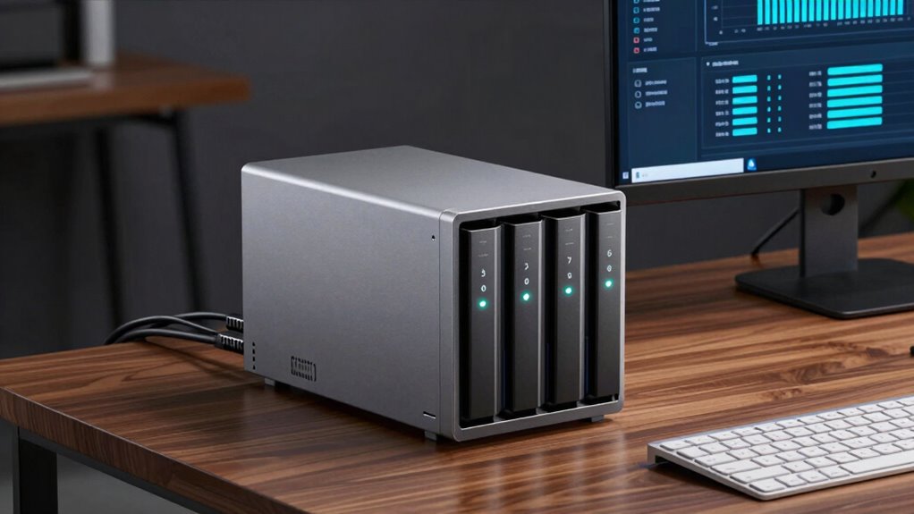A 6-bay NAS device typically lasts around 3 to 5 years with proper maintenance. I’ve found that factors like drive quality, usage frequency, and environmental conditions influence its lifespan. Regularly updating firmware, monitoring disk health, and ensuring good ventilation can extend its life. Honestly, I recommend planning for upgrades or replacements every few years to stay ahead of potential failures and keep your data safe.