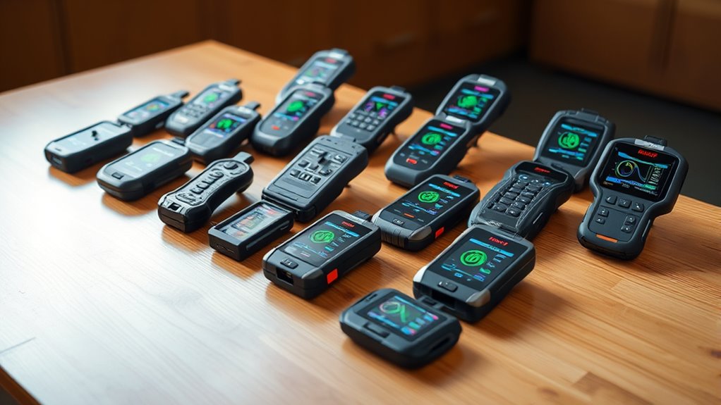When it comes to OBD2 scanners, durability and portability are critical factors that can affect your overall experience. A durable device features a tough casing that resists drops, shocks, dirt, and moisture, ensuring it lasts through frequent use. Portability is boosted by a compact, lightweight design, making it easy to store in a glove box, toolbox, or pocket. Reinforced cables and heavy-duty connectors prevent wear and tear, maintaining reliable connections over time. Protective features like rubberized edges or covers shield sensitive parts from damage, adding to the scanner’s longevity. Additionally, lightweight models allow for effortless transport and quick setup, whether you’re a professional or a DIY enthusiast. Choosing a robust, portable scanner ensures dependable performance wherever and whenever you need it.