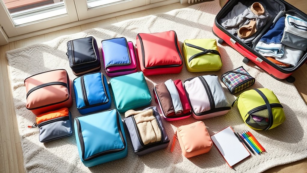 Packing cubes have changed the way I travel by keeping my suitcase organized and efficient. With a range of sizes and compression features, they help me maximize space and prevent wrinkling. I especially love using cubes for separating clothes, toiletries, and shoes. Their durable materials and mesh panels make accessing my belongings easy. If you’re curious about which packing cubes work best for you, stick around and discover my top picks for a stress-free travel experience.