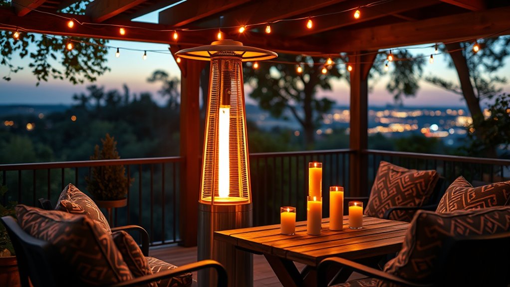 - Opt for propane or electric infrared heaters with safety features like tip-over and overheat protection for secure outdoor use.