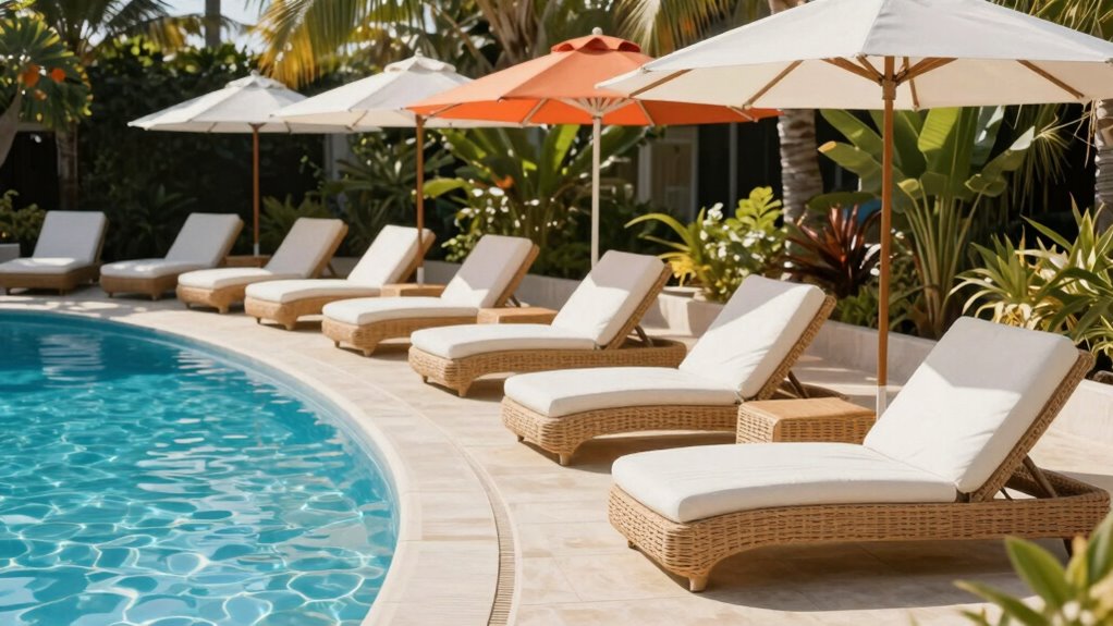 If you’re looking for the 15 best pool lounge chairs for 2026, I’ve got you covered. These options include adjustable, foldable, and sturdy designs that support up to 500 lbs, with comfort features like cup holders, pillows, and multiple reclining angles. Made from weather-resistant materials, they’re perfect for outdoor use and easy to transport or store. If you keep exploring, you’ll find the perfect fit to enhance your poolside relaxation.
