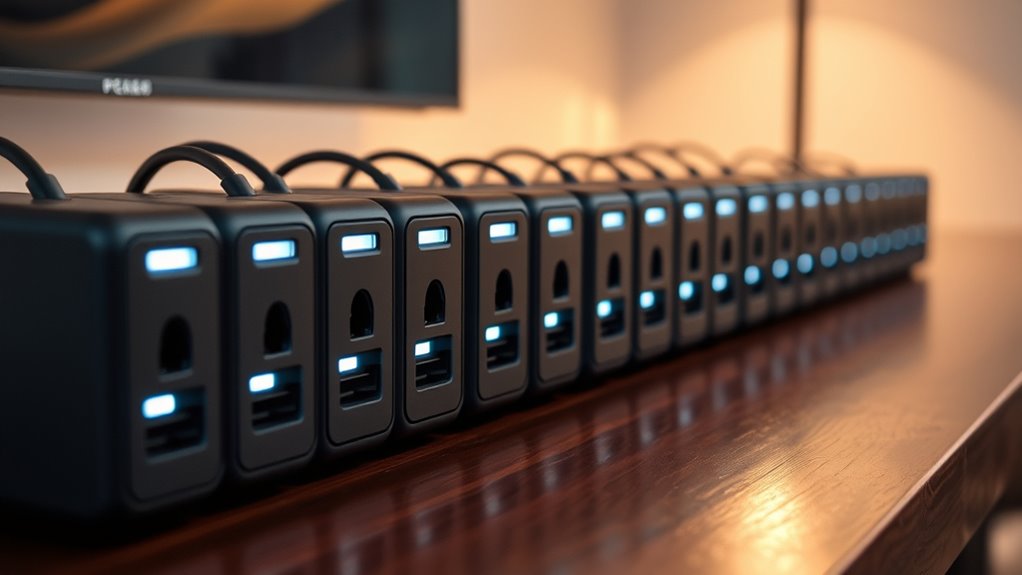 Yes, powerline adapters can support multiple devices at once. I’ve used them to connect my laptop, smart TV, and gaming console simultaneously without any issues. Most adapters have multiple Ethernet ports or support Wi-Fi, making it easy to share the connection. Just make certain your network’s bandwidth is sufficient for all devices, and you’ll enjoy seamless, reliable internet across your entire home.