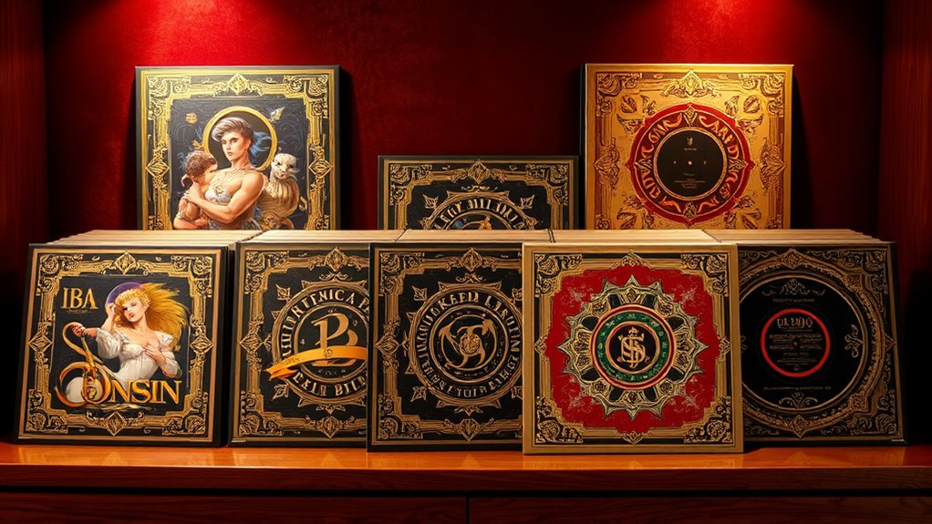Have you ever wondered why some collector’s edition vinyl sets command higher prices and status? It mainly comes down to their limited edition nature, exclusive packaging, and added collectibles. Rare pressings—like only 1,000 or 3,000 units—boost desirability and resale value. Unique designs, colored or picture discs, and special materials also enhance a set’s rarity and appeal. Bonus items like booklets, artwork, or exclusive tracks can justify higher prices while increasing collectibility. Usually, a higher price signals a product’s exclusivity and craftsmanship, attracting serious collectors seeking rare, valuable pieces. When choosing a premium vinyl set, consider how limited it is, the extras included, and its overall uniqueness. These factors directly influence its long-term value and your enjoyment as a collector.