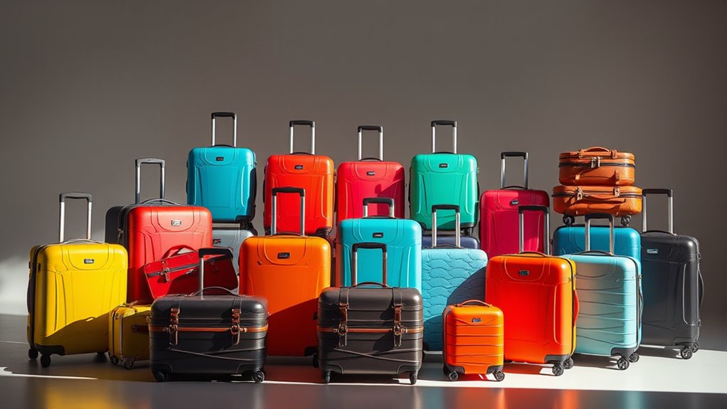 When I think of colors, I see a canvas waiting for adventure. Most hard-shell suitcase sets come in a vibrant array, including classic black, sleek navy, and eye-catching burgundy. You might also find fresh shades like mint green or blush pink, perfect for expressing your unique style. Each color not only reflects your personality but also symbolizes the journeys you’re about to set out on. Choose wisely; your suitcase is your travel companion!