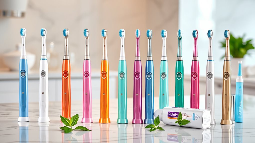 If you’re looking for the 14 best premium whitening toothbrush systems, I’ve got you covered! These advanced models offer powerful cleaning features and cutting-edge technology for a brighter smile. You’ll find options like the Aquasonic and Philips Sonicare series, designed for effective stain removal and gum health. Many come with customizable modes and ergonomic designs, ensuring a comfortable experience. Stick around, and I’ll share more details about each toothbrush that can help you make the best choice!
